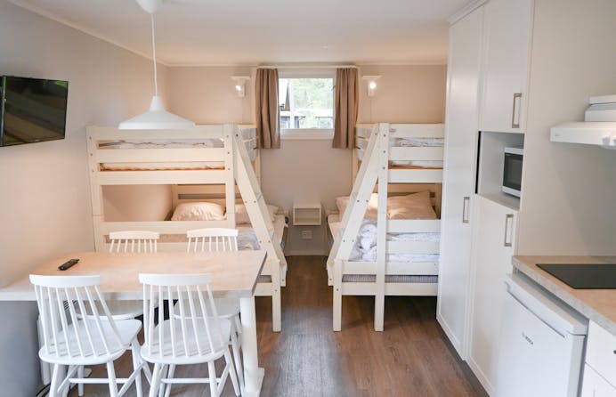 Här hittar du stugor som är generöst utrustade med kuddar, täcken, kaffebryggare, kokplattor, kylskåp och full köksutrustning. Vill ni ha något extra finns också möjligheten till tillval som lakan- och handdukspaket, barnstol och barnsäng.