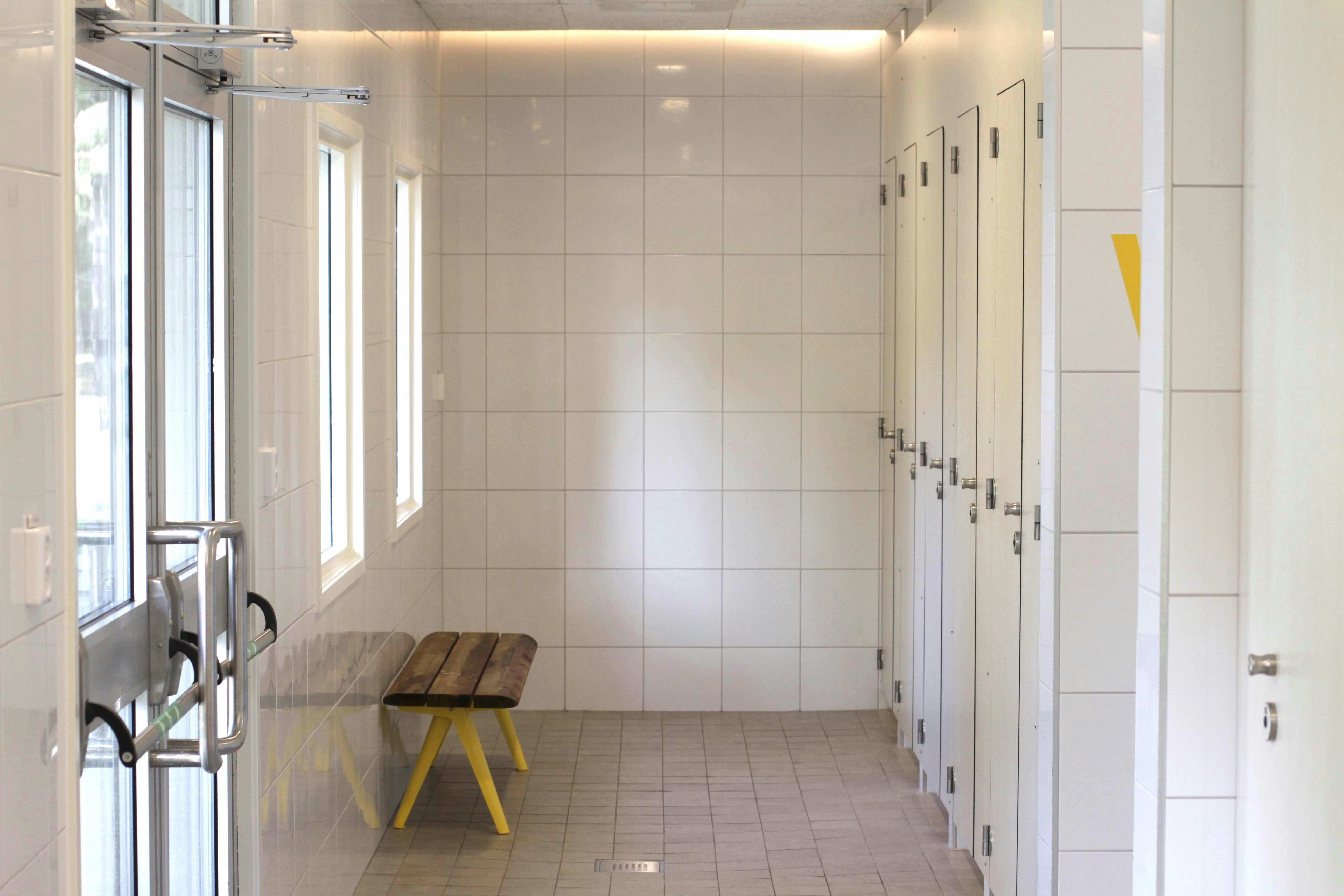Här hittar du ljusa och fräscha toaletter, handfat & duschar. Det är kostnadsfritt att duscha.