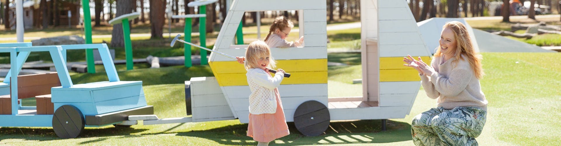 Bredvid Böddes Bana finns även en 12 hålsbana mer anpassad för den tävlingssugna familjen. Båda banorna är inspirerande inredda med roliga inslag av strand- och camping-tema.