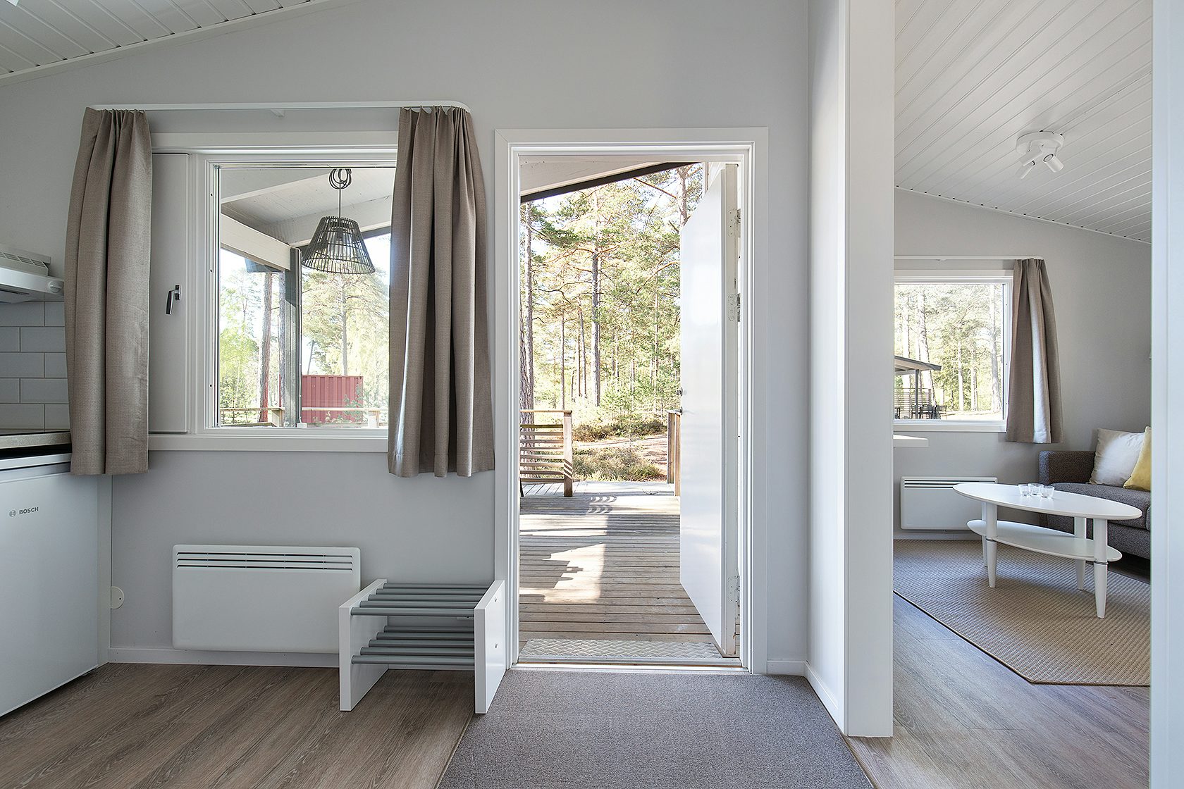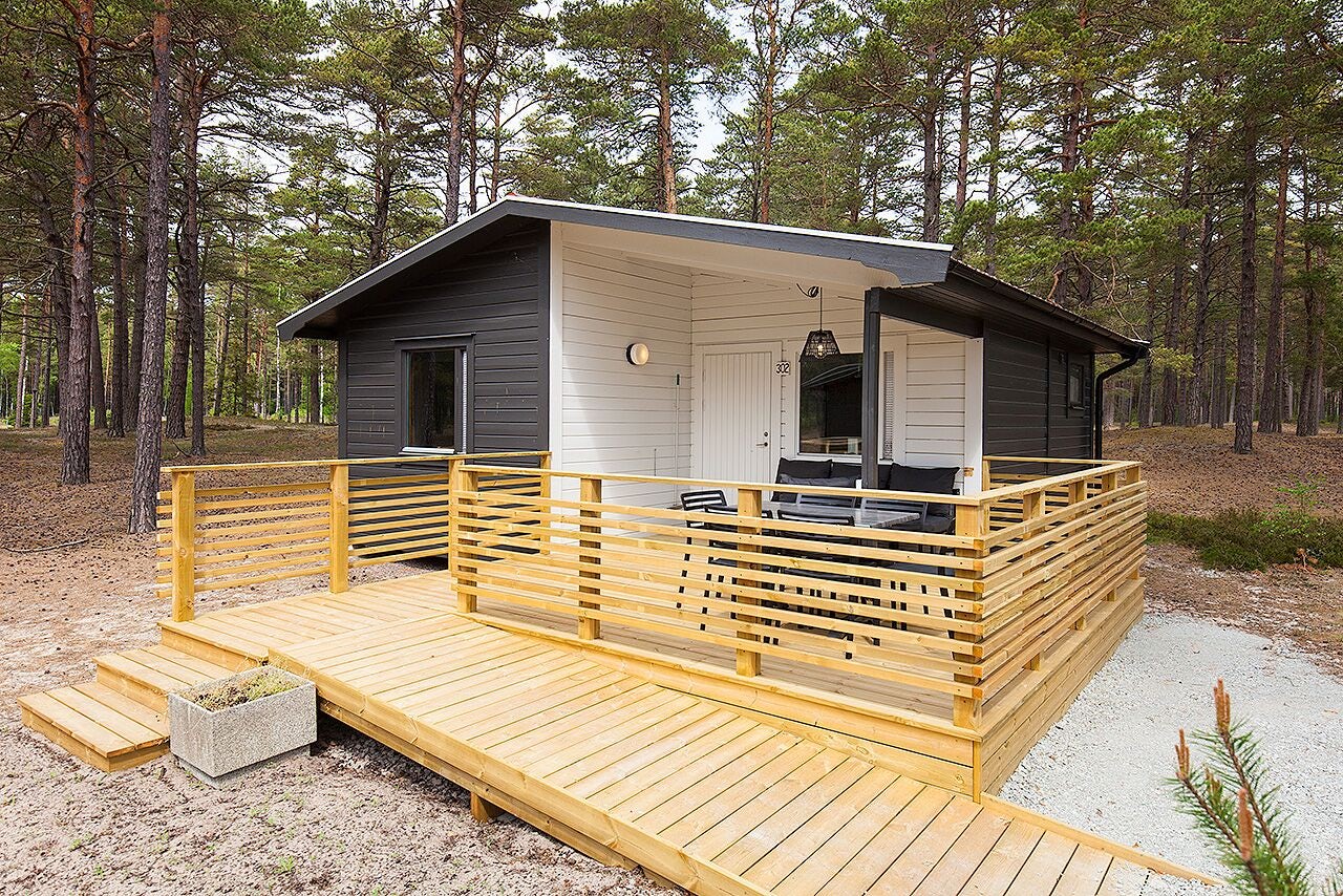 Granstugan är tillgänglighetsanpassad och erbjuder en tillgänglighetsanpassad WC-stol som kan lånas och bokas i receptionen. Alla stugor har en möblerad altan där ni kan koppla av och njuta av den fina omgivningen.
