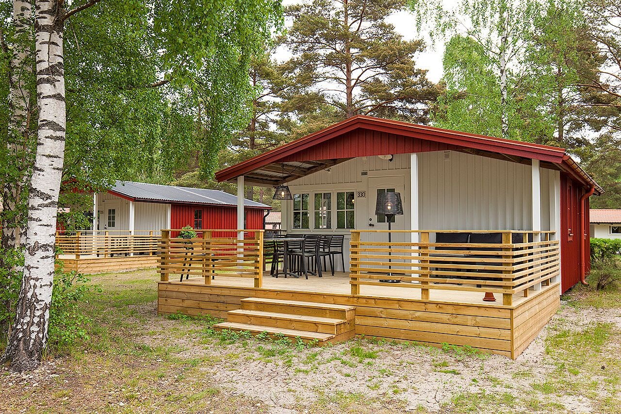 - Alla stugor har möblerad altan. Lakan & handdukar medtages eller hyrs för 250:-/set. Objektnummer: 329-334.