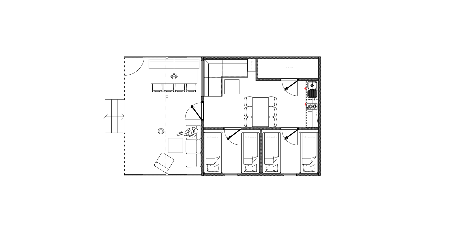 - Fyra våningssängar (två rum)