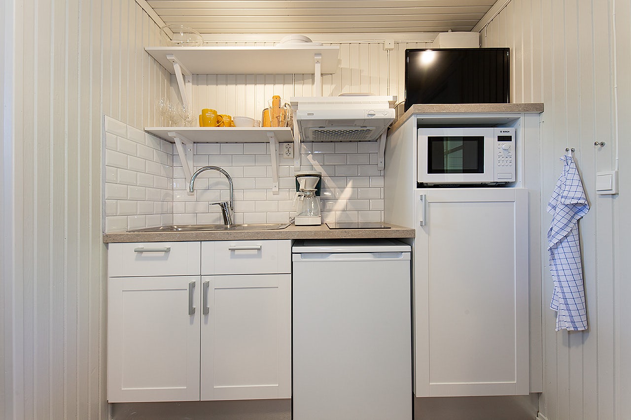 Stuga Typ 3 är ett bekvämt och prisvärt boende i parhusmiljö med en möblerad altan. Här finns en våningssäng med bredare underslaf, vilket gör att du kan bo upp till tre personer. Det finns pentry, WC, TV samt köksutrustning med kylskåp, frysfack, kaffebryggare och vattenkokare. Stugan ligger nära ett servicehus med kök, spis, ugn, diskmaskin och dusch.