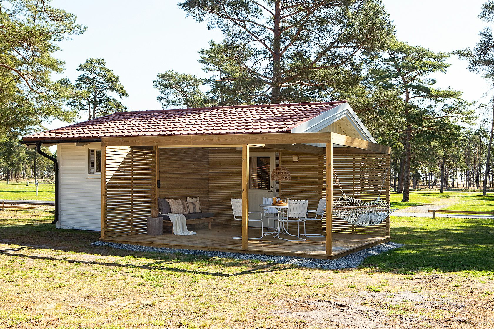 Badstugan är ett mysigt parhusboende. Alla stugor har möblerad altan, den här stugtypen har en extra stor och mysig sådan med hängmatta! Här finns en dubbelsäng och en nedfällbar våningssäng. Stugan har ett pentry med köksutrustning, kylskåp, frysfack, kaffebryggare och vattenkokare. Stugan har ej vatten och avlopp men servicehus finns nära till hands där du finner WC, dusch och kök. Vid veckobokning ingår ett spa-kit med en härlig spa-ritual för extra avkoppling.