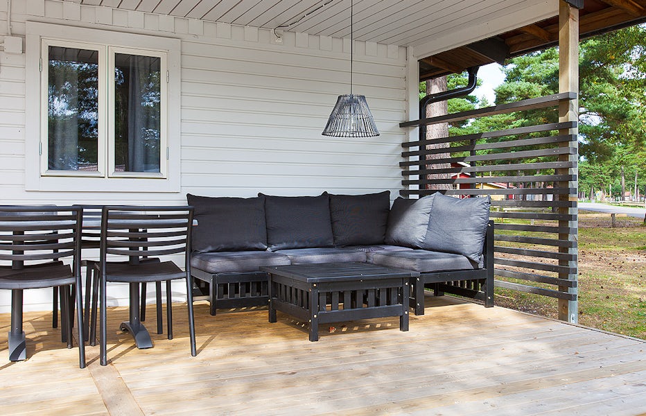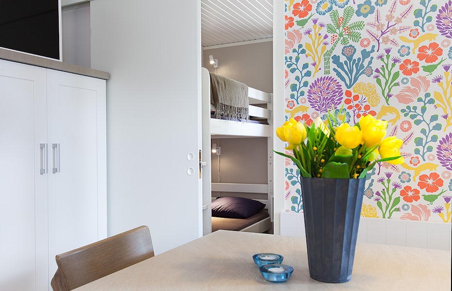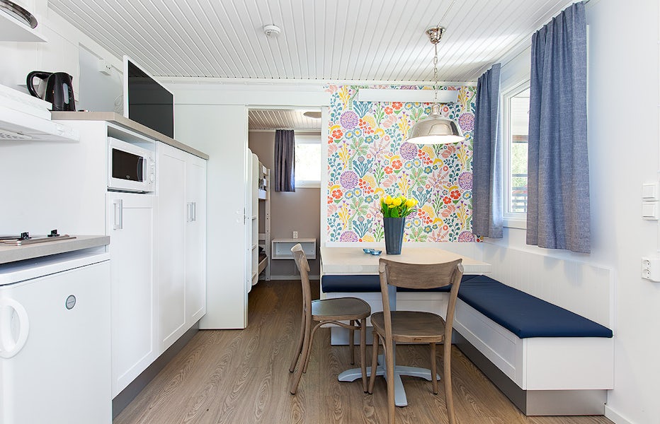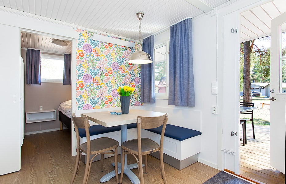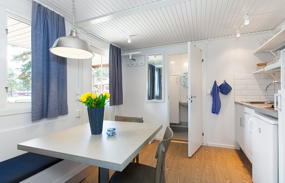 Stugtyp 7:2 är ett utmärkt val för familjen som vill ha det både mysigt och bekvämt. Med ett separat sovrum som rymmer en dubbelsäng och en våningssäng finns här gott om plats för en avkopplande vistelse. Stugan har ett praktiskt pentry med köksutrustning, kylskåp med frysfack, spis och kaffebryggare. Dusch, WC och TV finns för extra komfort, och alla stugor har en möblerad altan där ni kan njuta av morgonkaffet och sommarkvällarna.
