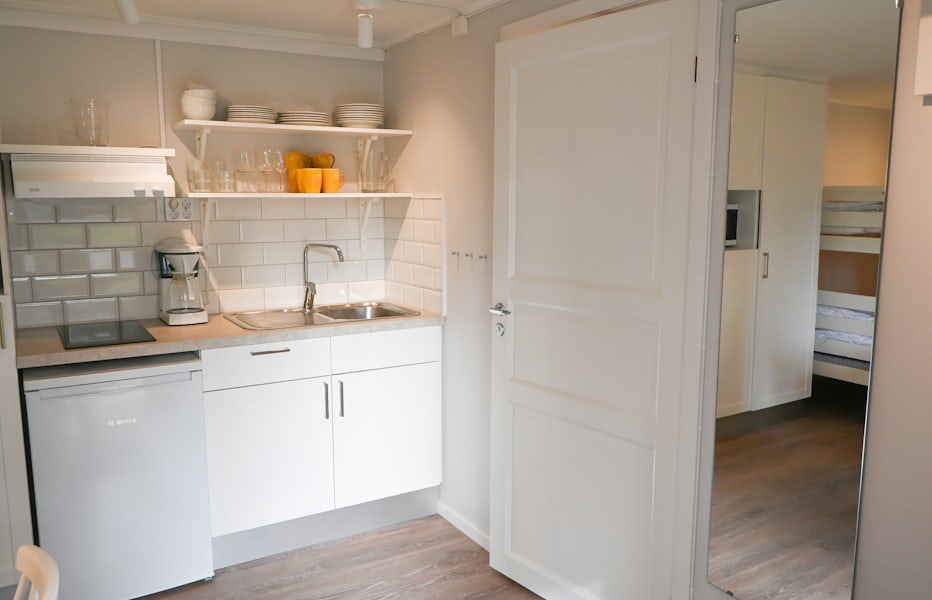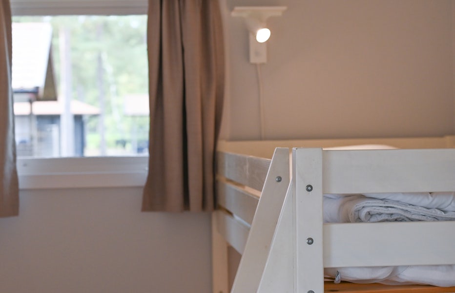Stugtyp 8 är ett perfekt val för den lilla familjen eller ett par vänner som söker en bekväm och prisvärd semester. Stugan har två våningssängar med bredare underslaf, vilket ger bra sovmöjligheter i ett kombinerat sov- och allrum. Här finns ett pentry med köksutrustning, kylskåp med frysfack och kaffebryggare, samt dusch, WC och TV för extra bekvämlighet. Alla stugor har en möblerad altan där ni kan koppla av efter dagens äventyr.