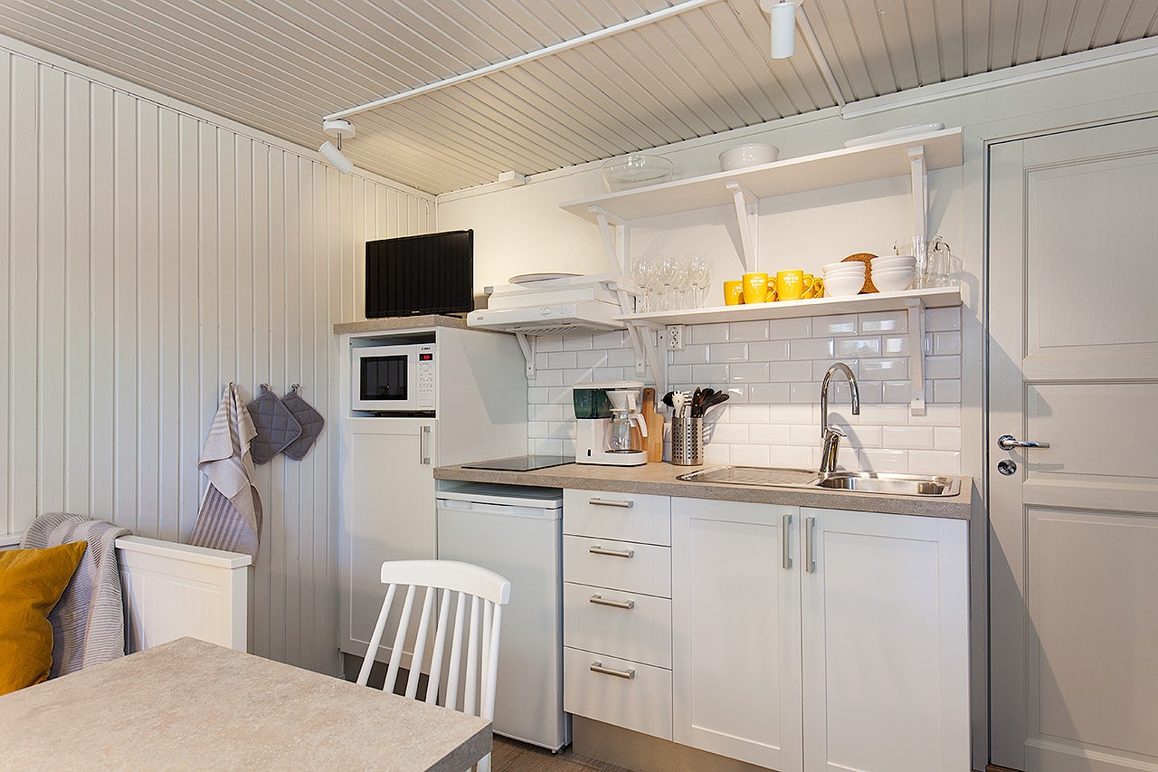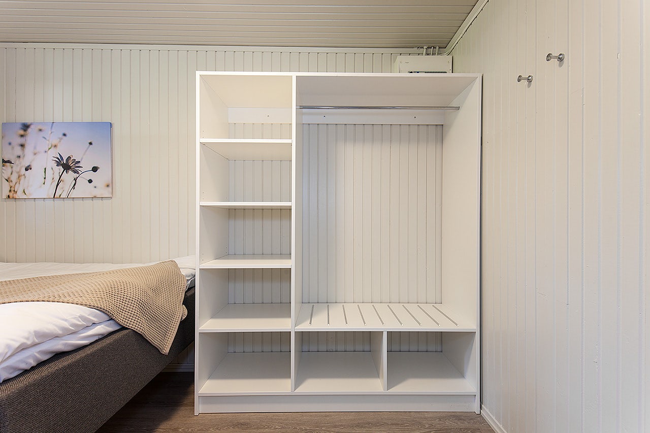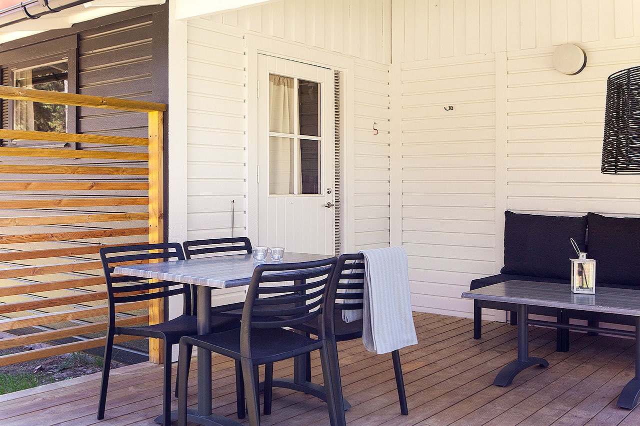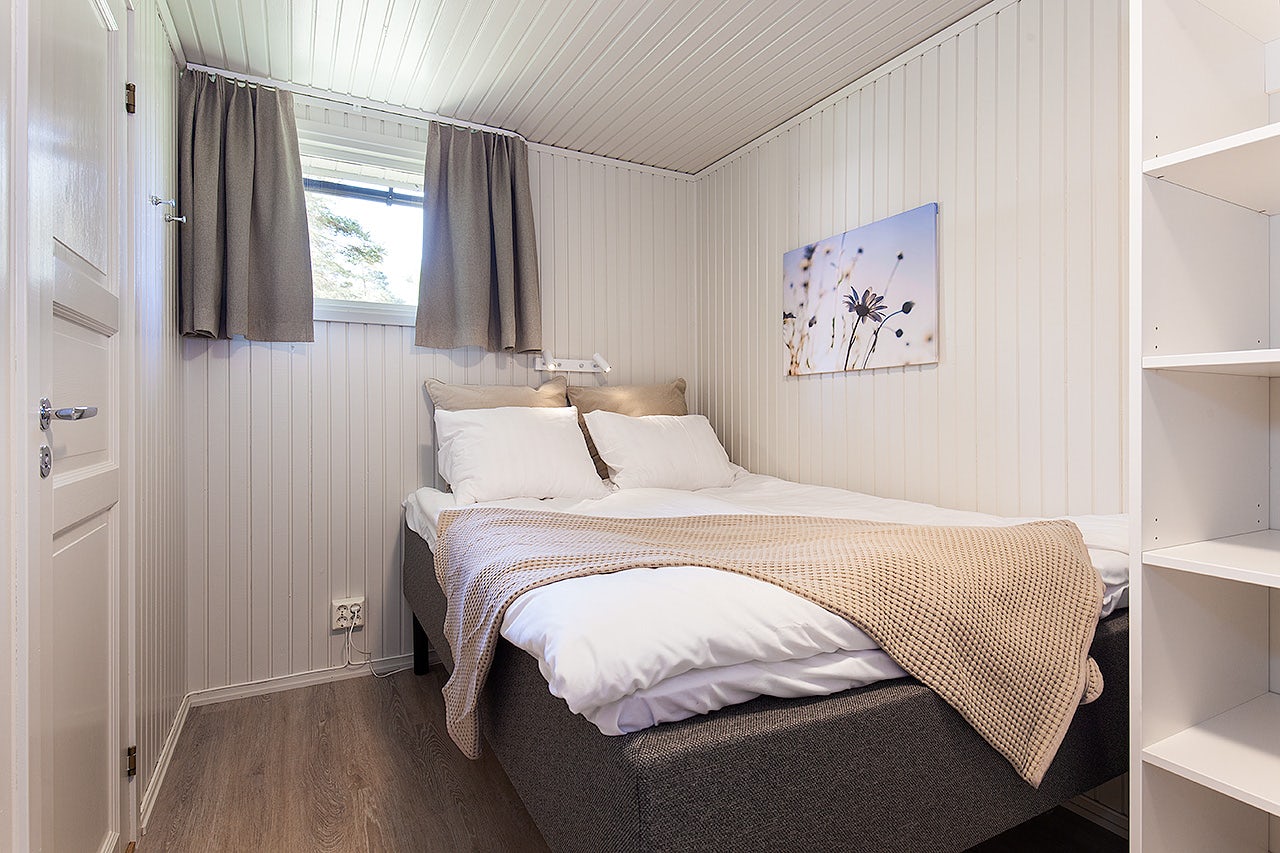 Stugtyp 9 erbjuder ett perfekt boende för familjen eller en grupp vänner som söker både komfort och utrymme. Här finns två separata sovrum – ett med dubbelsäng och ett med våningssäng med bredare underslaf – samt en bäddbar soffa i allrummet, vilket ger gott om sovplatser. Stugan är utrustad med ett pentry med köksutrustning, mikro, kylskåp med frysfack och kaffebryggare. Dusch, WC och TV finns också för en bekväm vistelse. Alla stugor har en möblerad altan, perfekt för att koppla av efter en aktiv dag.